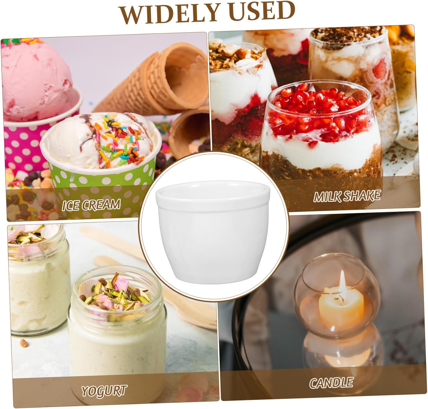 Package List 4 x Dessert Cups Features -Color:White dessert bowl -Material:Ceramic pudding cup -Size:9.30X9.30X7.30cm/3.65X3.65X2.87in dessert cups -Capacity: about 250ml salad bowl for party - Light weight, small size, the serving cup is easy to place and store, space-saving, convenient to take small yogurt bowl. - Ceramic materials made, the small dessert bowl is safe and practical, can be used for long period of time dessert serving bowls. - An and display your favorite finger foods, mousses, snacks, desserts, and appetizers, fit your demands ice cream holder. - Smooth surface, touching feeling, the cup is elegant and delicate, can impress your guests much more ice cream bowl. - This dessert cup adds a touch of sophistication to any kitchen or dining table, enhancing the overall aesthetic appeal yogurt bowl.Goods Descriptiondessert cups ceramic The pudding cup is safe to use for use, large opening design, proper for serving puddings, yogurt and desserts as you need.pudding cup Whether you are hosting a gathering of family and friends, or having festivals events such as weddings or birthday, the snack cup is very practical and decorative