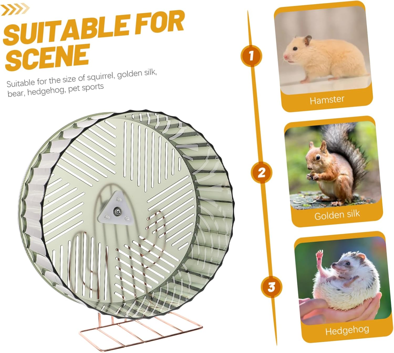 Package List 1 x Hamster Characteristics -Note: The color of the stand is golden compact rat wheel. - Color: Green decorative hamster wheel - Size: 26.50X23.00X9.00cm/10.41X9.04X3.54in compact hedgehog wheel -Material:Plastic and alloy hamster supply -The running wheel provides the animals joyful living environment in the cages cage hamster wheel . - play set for hamster, mouse, and small hedgehog. They can have of fun and entertainment from it chinchilla wheel. -This exercise wheel can easily meet the needs of the exercise for your small pets compact chinchilla wheel. -A your family and friends who have a small pet like hamsters, and they will like it hedgehog wheel. -You can put the pet into the running wheel, let it play freely, and provide interactive fun for pets and pet owners hamster accessory.Goods Descriptionsmall chinchilla wheel their energy and enrich activities.small rat wheel Are you looking for a creative and for your lovely hamster? Our production can meet all your requirements with and reliable material, for your small pet playing